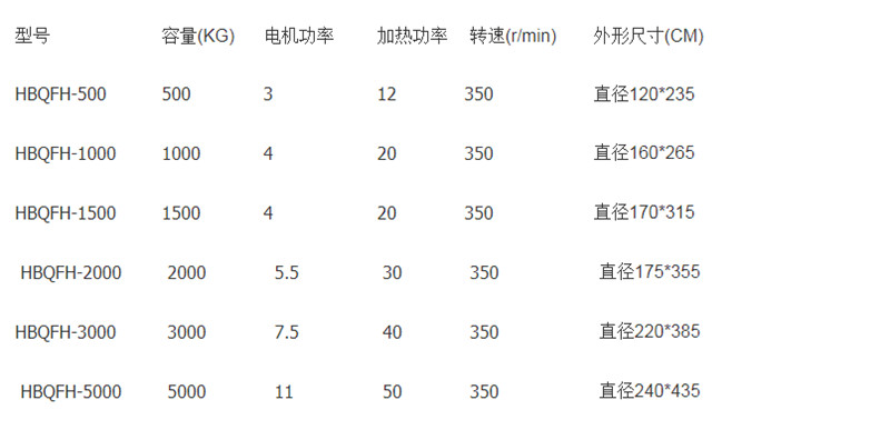 聚丙稀塑料顆粒大型熱風(fēng)干燥機(jī)參數(shù):