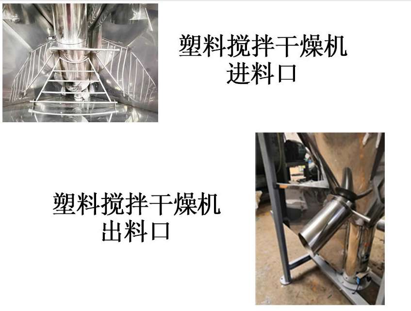 立式攪拌干燥機(jī)主要用于多種顏色塑料顆粒的混合,干燥機(jī)是注塑機(jī)、造粒機(jī)的必備配套設(shè)備之一,塑料粒子從進(jìn)料斗進(jìn)入,在螺旋葉片推進(jìn)力的作用下,沿著葉片表面向上滑動(dòng)前進(jìn)在上部的離心力的作用下,向桶體四周散開,散開的物料不斷向下移動(dòng),由循環(huán)出料口和桶內(nèi)循環(huán)料口不斷被螺旋葉片帶動(dòng)提升。這樣反復(fù)循環(huán),達(dá)到混合目的,與此同時(shí)空氣經(jīng)鼓風(fēng)機(jī)送至電加熱箱中,加熱后成為熱風(fēng)再 經(jīng)溫控表自動(dòng)控制,以均勻適合的熱風(fēng)從樹脂之間一路穿透,穿過物料層,進(jìn)行熱交替不斷帶走濕氣,樹脂粒子由上而下,下降過程中連續(xù)不斷得到吹掃干燥,完成高效率干燥和混合工藝。